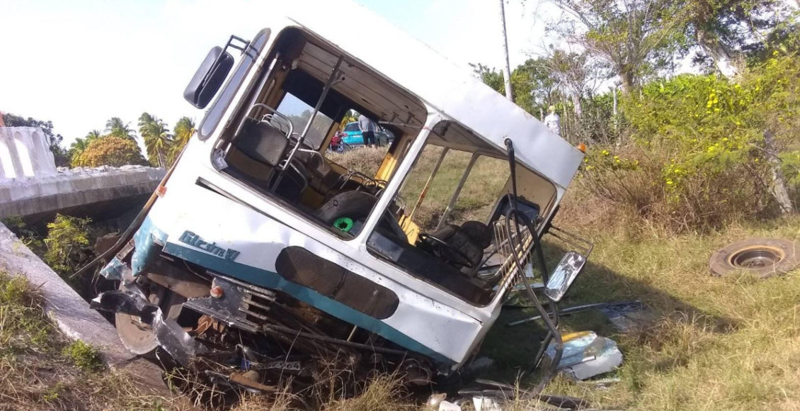 Esta vez, contrario al primero que ocurrió ayer en la misma provincia, en este solo estuvo involucrado un vehículo. Se trata de un ómnibus de la marca Girón, perteneciente a la Unidad Empresarial de Base Baraguá, de la provincia de Ciego de Ávila. Un desperfecto en uno de sus neumáticos delanteros fue el desencadenante de una serie de fatídicos sucesos que provocaron el choque.
