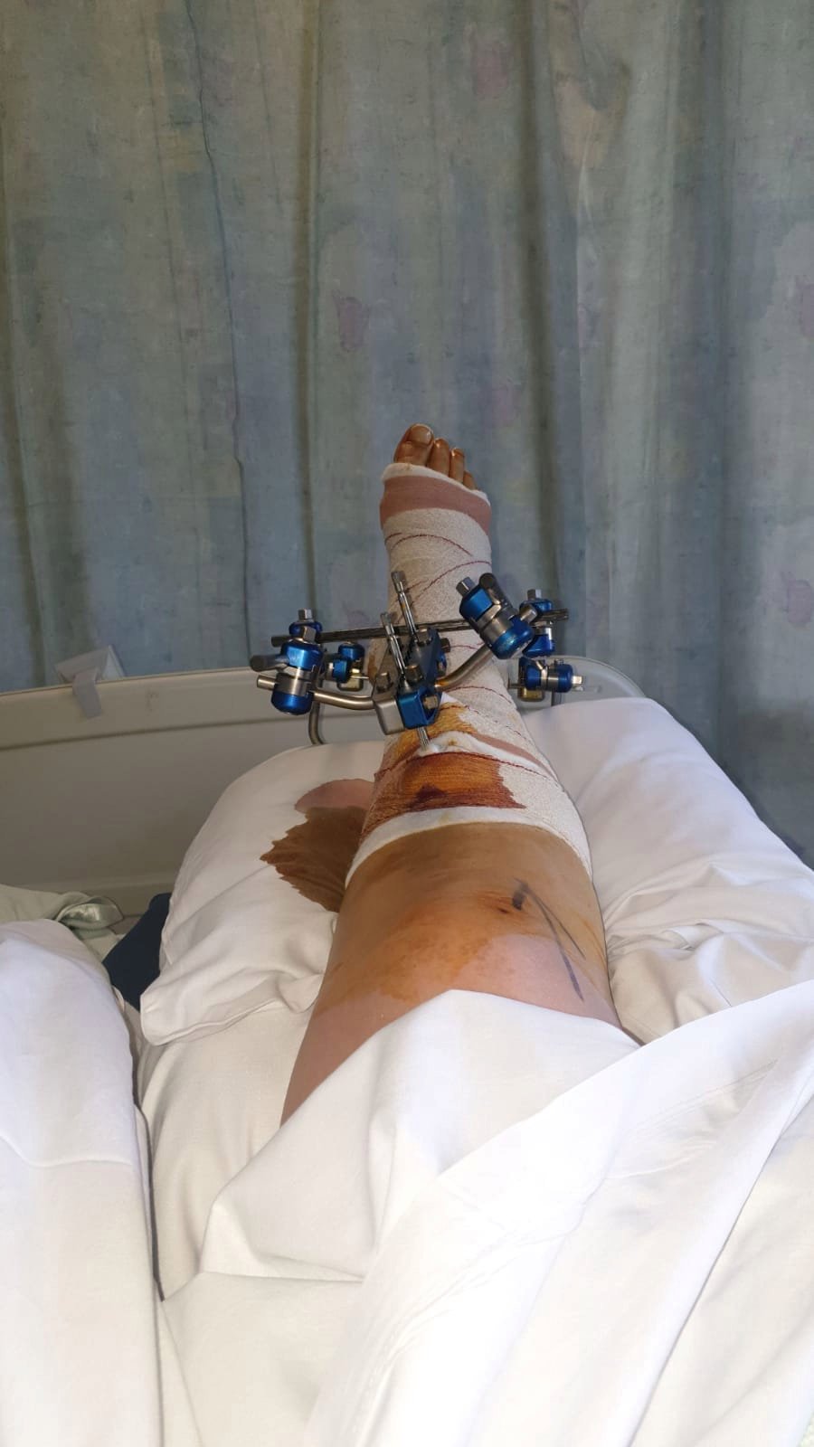Eden pasó nueve días en el hospital luego del incidente. Se había roto el peroné en cinco lugares y la tibia una vez. También se fracturó el costado del pie y se fracturó el tobillo.