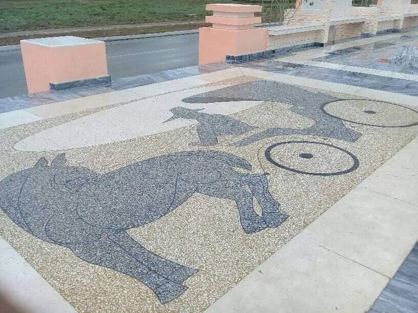 Se trata de un trayecto minúsculo, con apenas unos ciento y tanto de metros de recorrido. Su caro piso de mármol y su bancos esculpidos en gratino, están rematados con obras de arte de artistas de la localidad incrustadas en el suelo.