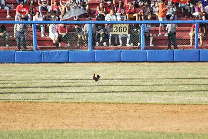 No cabe la menor deuda que esta gallina casi negra no formaba parte de la plantilla del estadio Victoria de Girón, por lo que su vuelo desde las gradas al terreno no tiene otra explicación que una especie de brujería anti camagüeyana.