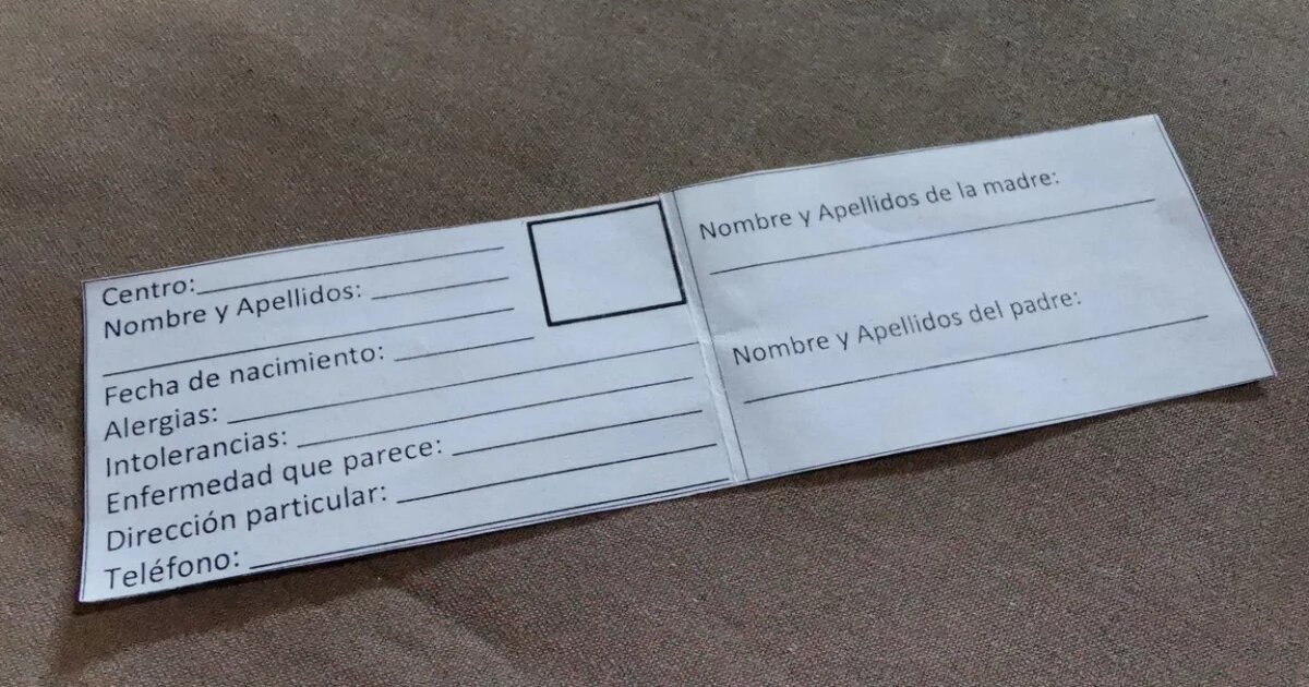 Se trata de una especie de cuadro identificativo donde los padres deben plasmar el nombre de su hijo, con una foto, el nombre de ambos progenitores, los teléfonos dónde pueden ser localizados, su dirección particular y detalles sobre alergias, intolerancias a medicamentos y enfermedades que padecen estos pequeños.