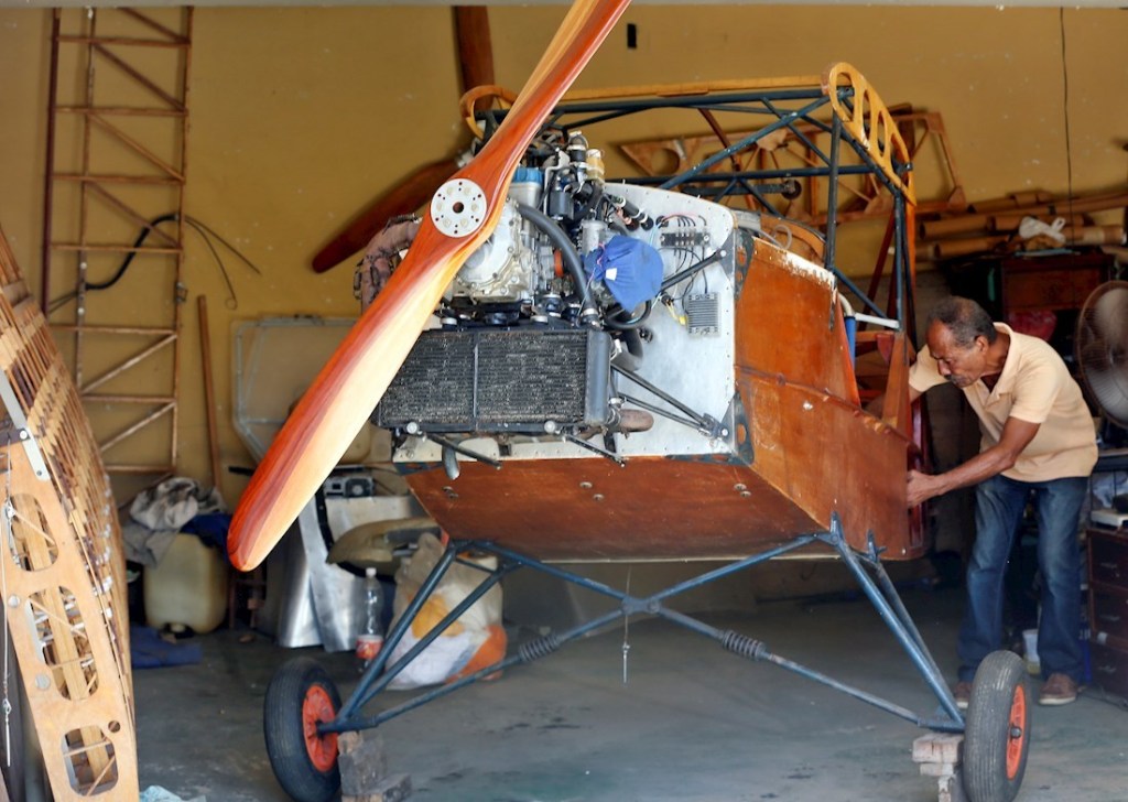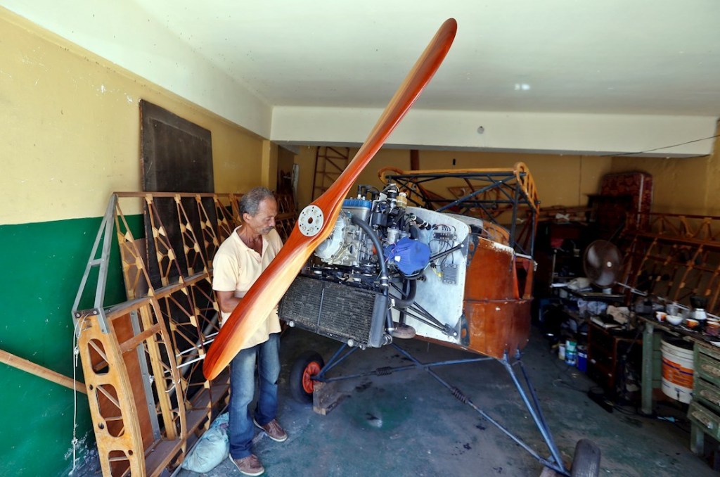 En el garaje de su casa, con mucha inventiva, ayuda de sus vecinos, madera y acero, el ingeniero cubano Adolfo Rivera, de 70 años, está construyendo un pequeño avión con el que pretende surcar junto a su esposa los cielos de la Isla en los próximos meses de verano, dice que lo tiene todo listo y solo le falta la tela para cubrir las alas antes de terminar de ensamblarlo.