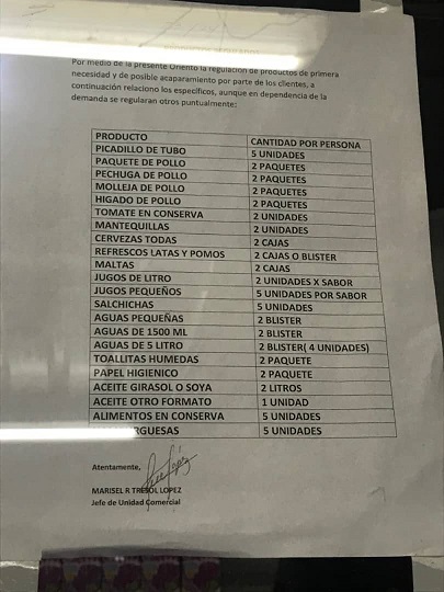 “La iniciativa vino de las máximas autoridades y tiene como objetivo evitar el acaparamiento y tratar de que la mayor cantidad posible de personas pueda satisfacer necesidades elementales”, comentó una de las trabajadoras del Rápido ubicado en la esquina de 14 y 23 en el Vedado.