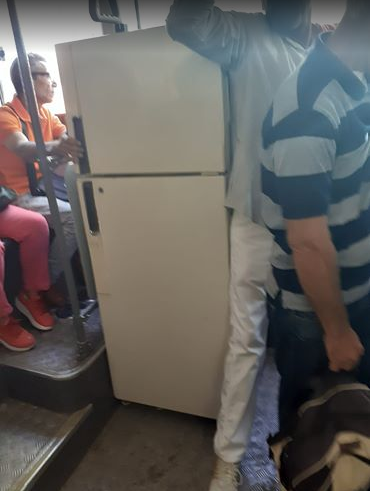 Recientemente salieron a la luz imágenes de un refrigerador dentro de una guagua llena de pasajeros en La Habana. Según publicó en redes sociales el usuario Yosvany Guerrero Pedroso, sus dueños montaron el equipo electrodoméstico en un ómnibus P11.