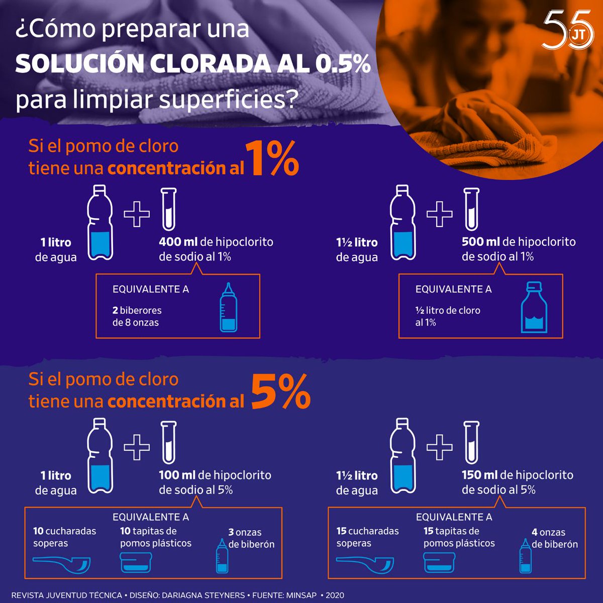 Fórmula para preparar la solución clorada al 0.5% para la limpieza de objetos y superficies