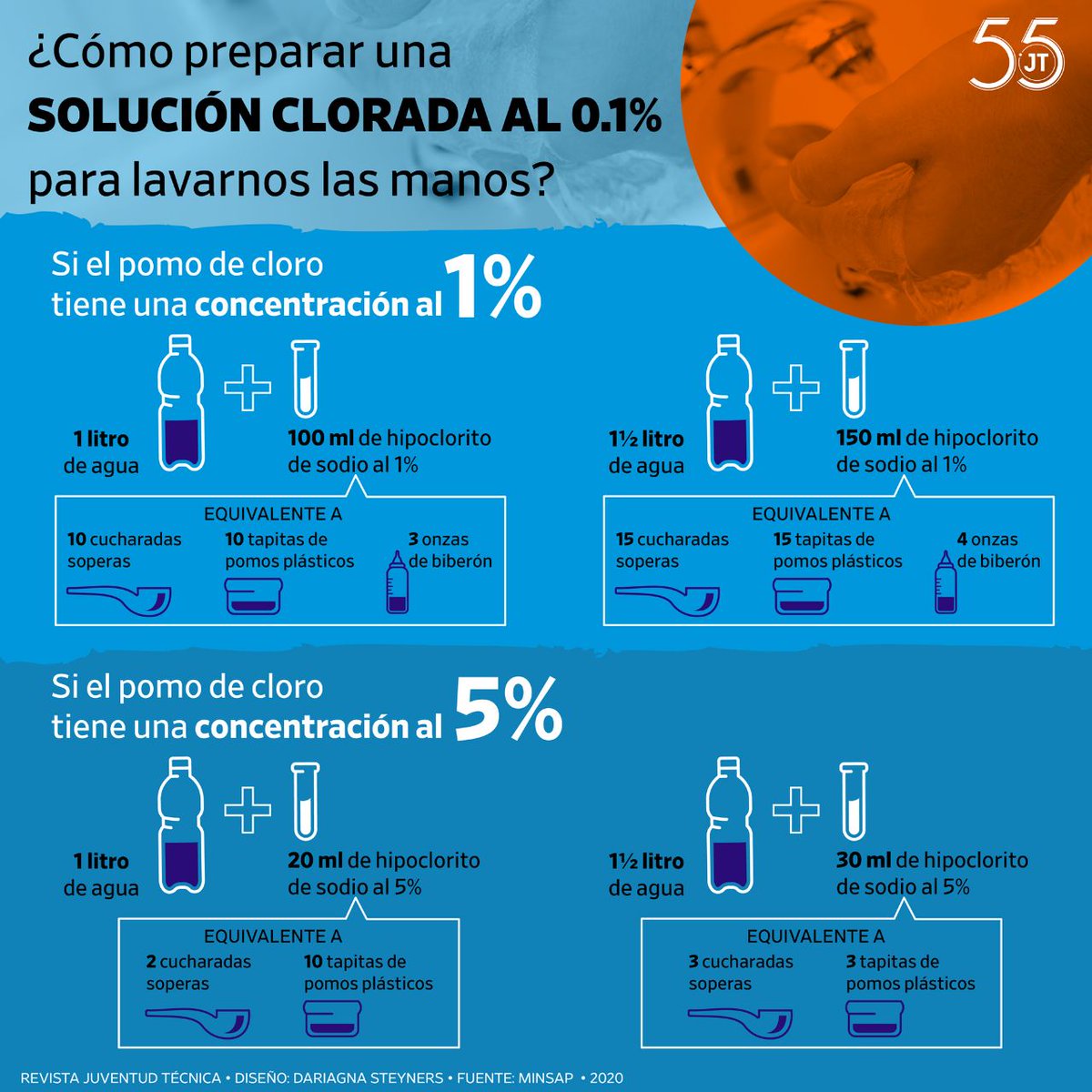 Fórmula para preparar la solución clorada al 0.1% para el lavado y desinfección de manos