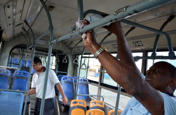 «Cada vez que un ómnibus complete una ida, en el descanso antes de volver a iniciar el regreso también se están aplicando estas medidas, y en este caso son el chófer y el conductor quienes realizan la limpieza con los medios que le son entregados», aseguró Mauricio Mató Hernández, director de la Terminal de Mulgoba, donde se concentran los ómnibus que conectan la zona de oeste de la capital cubana.