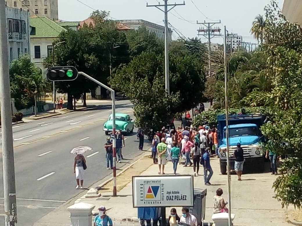 Sin tomar en cuenta el riesgo que supone, y la alta probabilidad de contagiarse con el coronavirus, una gran aglomeración de personas tuvo lugar hoy en el barrio del Vedado, en la capital cubana, cuando en el Mercado de 23 y C sacaron a la venta helado rebajado.