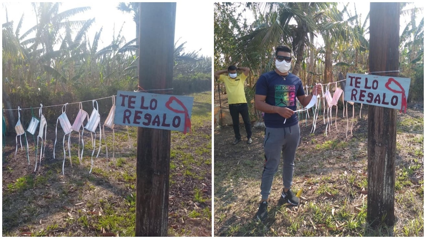 En la puerta de su vivienda, la cual está a solo metros de la Carretera Central, en la provincia de Las Tunas, estas dos mujeres colgaron un cartel con el mensaje “Te lo regalo”. Un poco más atrás del letrero, se alcanza a ver una tendedera repleta de nasobucos caseros listos para ser entregados a quienes les haga falta