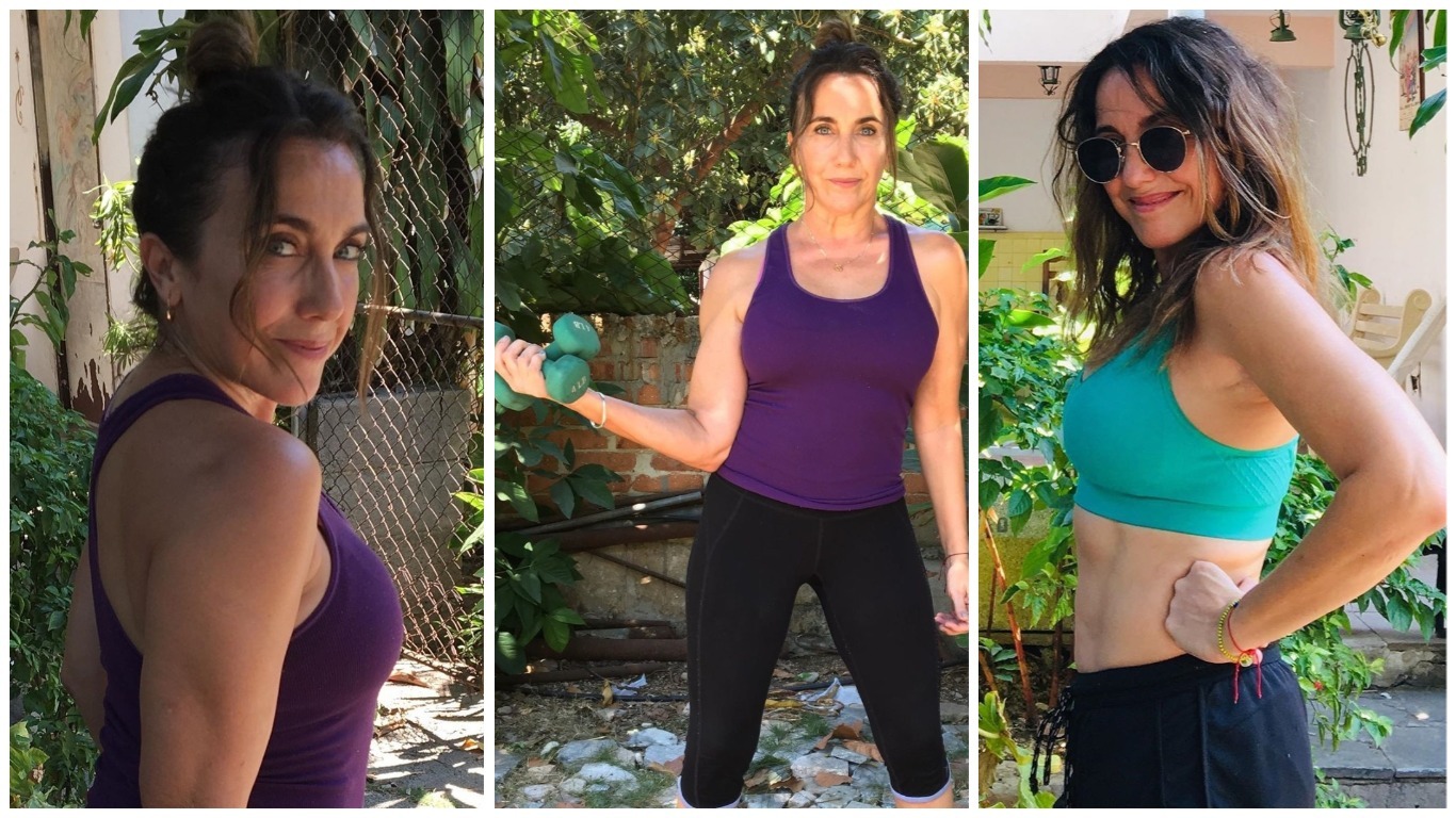 La actriz ha aprovechado el tiempo en cuarentena para continuar con su rutina de ejercicios y seguir manteniendo la estupenda figura que posee a sus 51 años de edad y aunque no puede acudir al gimnasio en estos momentos, se mantienen realizando sus entrenamientos desde casa.