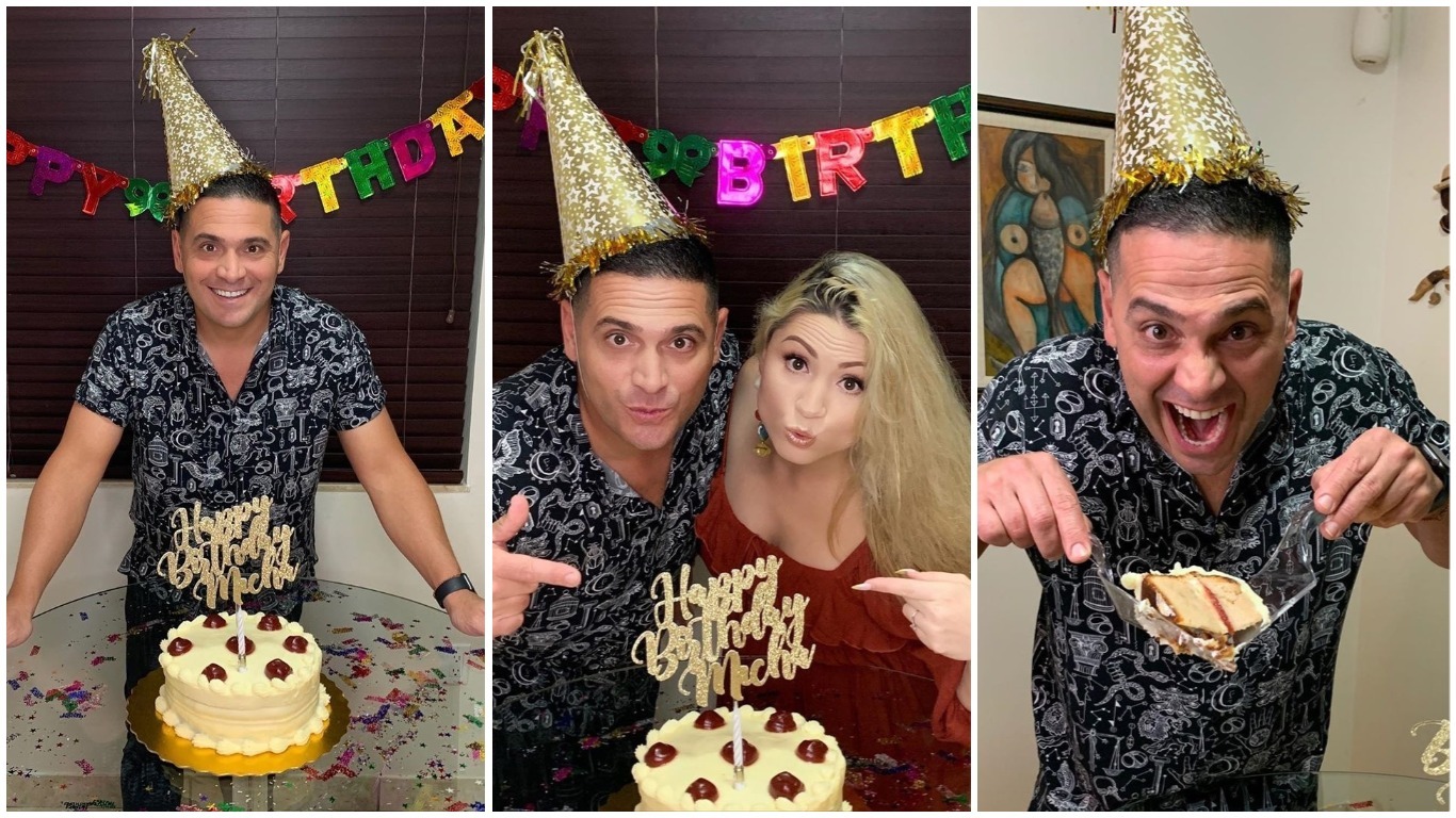 El actor cubano Mijail Mulkay está hoy cumpliendo 46 años de edad y aunque no va ha poder festejarlos como quisiera, reunido de familiares y amigos, lo que si no pudo faltar fue su torta para soplar las velitas en medio de la cuarentena que esta cumpliendo junto a su esposa, la cantante cubana Olga Thomas.