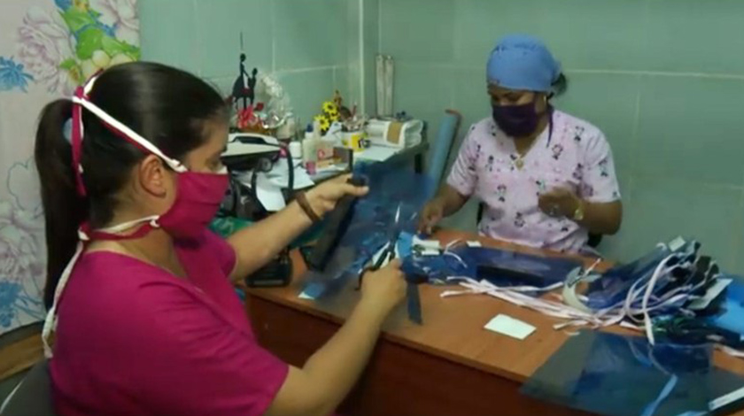 «Para paliar los efectos que la propagación del SARS-CoV-2 ha demandado, y ante la ferocidad y falta de humanismo del gobierno de la nación norteña, profesionales y personal de servicio dedican parte de su tiempo a fabricar las caretas en la citada unidad hospitalaria, ubicada en esta ciudad, a partir de placas de rayos X recuperadas procedentes del área de imaginología, y otras donadas por pacientes y por los propios trabajadores», indica el reporte de la ACN.