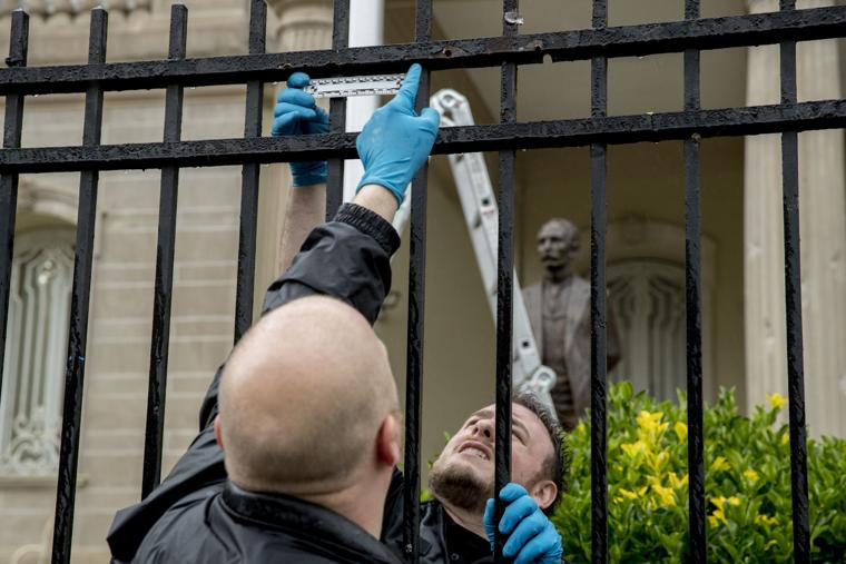 En las imágenes difundidas en las redes sociales se pueden ver a varios agentes con una escalera recogiendo pruebas cerca de la estatua de bronce de José Martí que se encuentra en la entrada de la sede consular, mientras con la ayuda de equipos especiales medían el impacto de las balas que rompieron molduras de la entrada y quedaron marcadas en los muros.