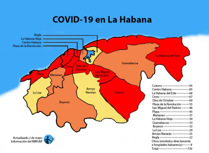 Los ocho municipios con peor panorama y más elevado numero de contagios son Plaza de la Revolución, Centro Habana, Regla, Habana Vieja, Habana del Este, 10 de Octubre, Cerro y Cotorro.