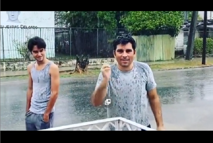El humorista Luis Silva, más conocido entre los cubanos por su personaje Pánfilo, aprovechó el primer aguacero del mes de mayo para bañarse pues asegura que da suerte, y bajo la lluvia aprovechó para enviarle una felicitación a todas las madres cubanas en su día.