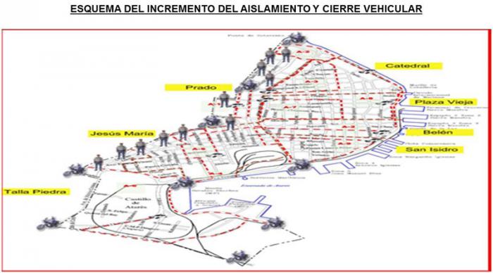 Una amplia frontera terrestre será desplegada en las próximas horas, colocándose barandas con señales de orientación para limitar el acceso del tránsito hacia el interior y se impondrán multas administrativas a los violadores de las medidas adoptadas, y otras de orden penal en los casos reincidentes».