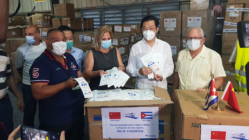 A finales del mes de marzo el gobierno de la nación asiática envió a la mayor de las Antillas unas 100.000 mascarillas protectoras, las cuales fueron donadas por la empresa Beijing Fanglian Technology Co.,Ltd.