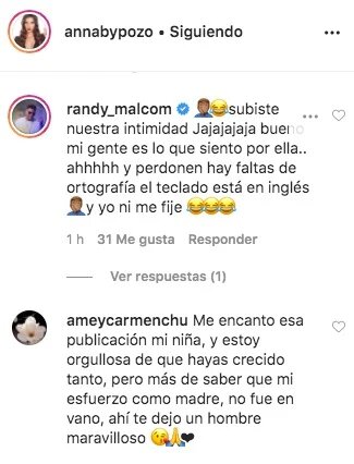Los seguidores celebraron el amor de la pareja y les desearon mucha felicidad. Además tanto Randy como su mamá también comentaron el mensaje de Annaby.