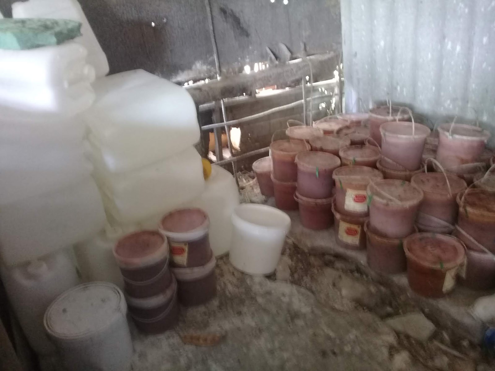 En el lugar fueron ocupadas 101 cubetas de 5 litros cada una de Vita Nuova (puré de tomate), 66 cubetas de mermelada de guayaba de 10 litros, 242 latas de mermelada de guayaba, 60 pomos de salsa para elaborar pizzas de 20 litros, 27 pomos de mermelada de guayaba de 1 litro y 52 cubetas de encurtido de col de 10 litros.