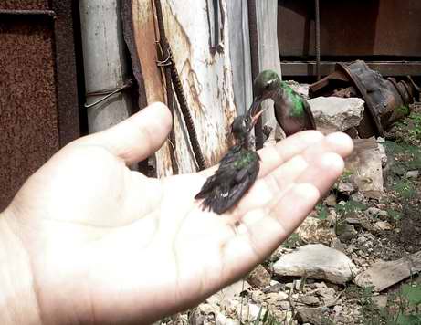 “Al parecer el nido se había caído. Lo encontré tirado en el suelo y al pichón con un golpe en uno de sus ojos. Lo llevé para dentro de la casa y le hice un pequeño nido con algodón. Al otro día por la mañana vi a la madre entrar, al parecer buscándolo y de igual manera, él le respondió. Yo me di cuenta que quería alimentarlo y puse al pequeño en la palma de mi mano. Salí al patio, a los veinte minutos más o menos, la mamá zunzún accedió a darle comida en mi mano; a partir de entonces lo alimentaba de esa manera tres o cuatro veces en el día», recordó, trayendo de nuevo aquella inolvidable imagen que nunca desaparecerá de su memoria.