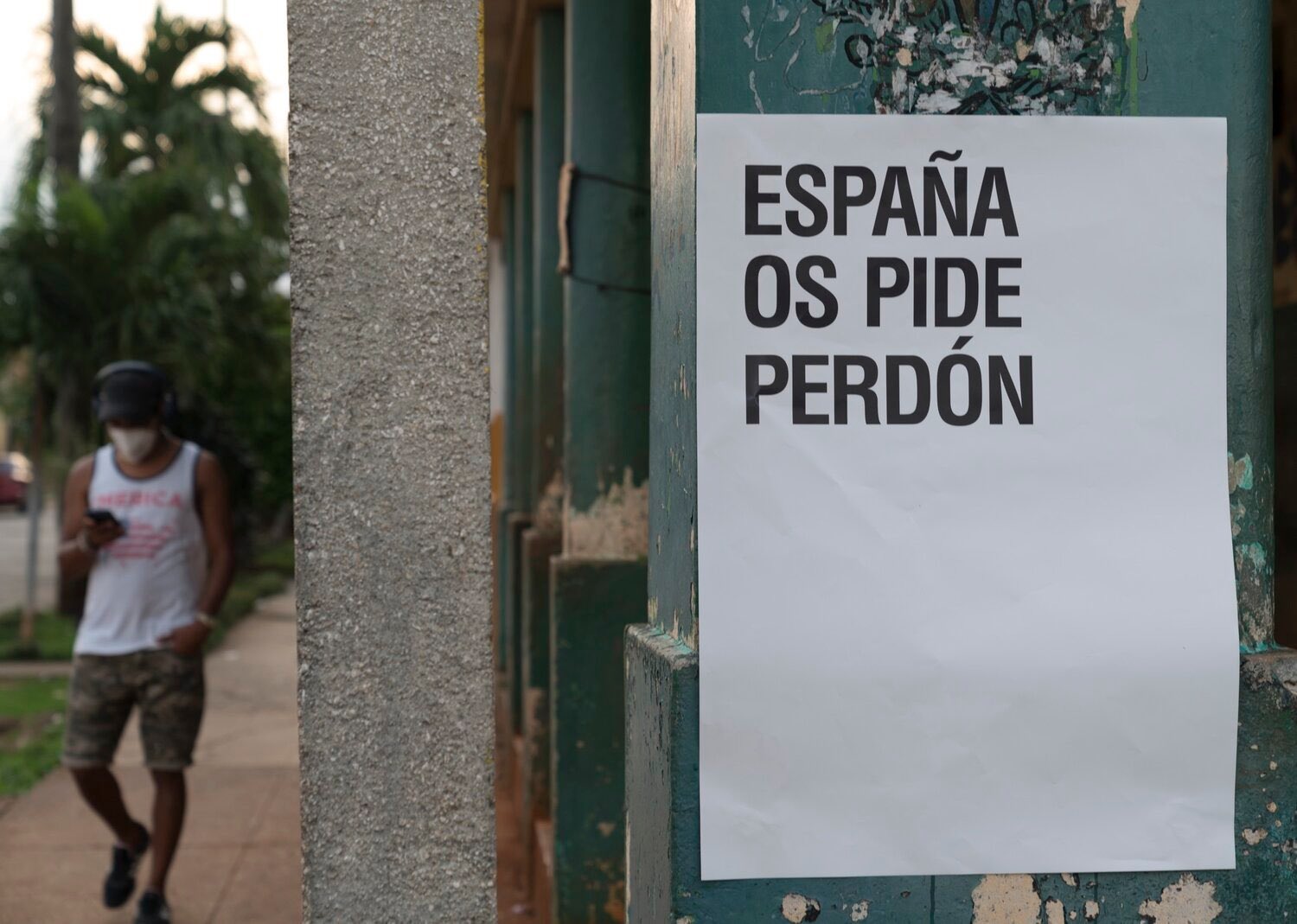 Las calles de La Habana rompieron la tranquilidad que en estos días se vive en las mañanas por la pandemia del coronavirus cuando muchas de sus calles amanecieron llenas de carteles donde se podía leer el siguiente mensaje: «España os pide perdón».