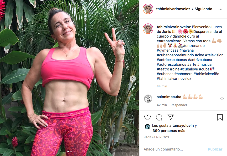 La popular y querida actriz cubana Tahimí Alvariño esta aprovechando muy bien esta etapa de cuarentena en su casa en La Habana para ponerse en forma y así lo ha querido compartir con sus seguidores, publicando en sus redes sociales varias fotografías de los «abdominales de acero» que luce a sus 51 años.