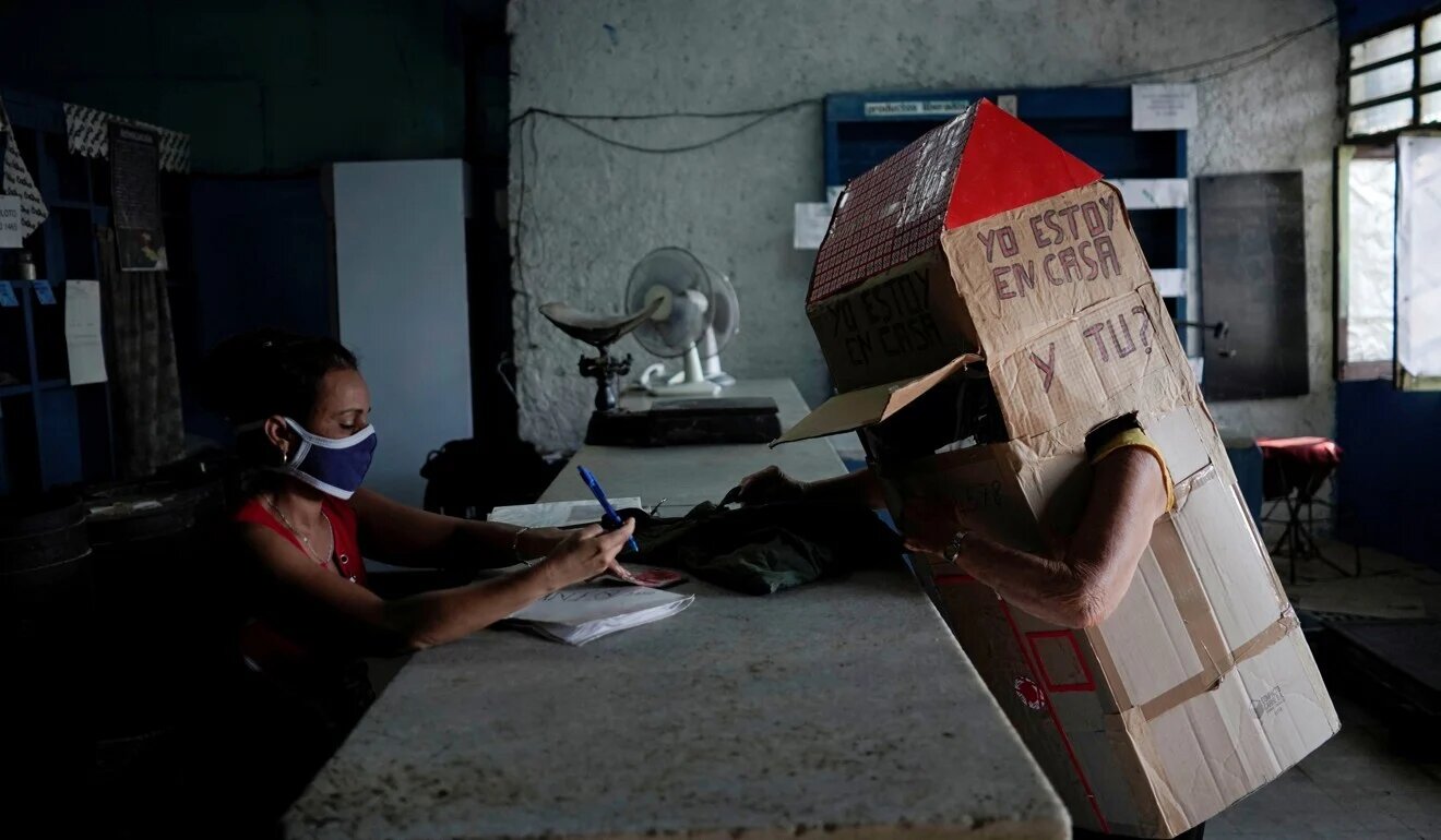 Feridia Rojas es una mujer que ha llamado la atención de sus vecinos en La Habana, Cuba, pues desde que el nuevo coronavirus llegó a la isla se le puede observar por las calles caminando con una gran caja de cartón.