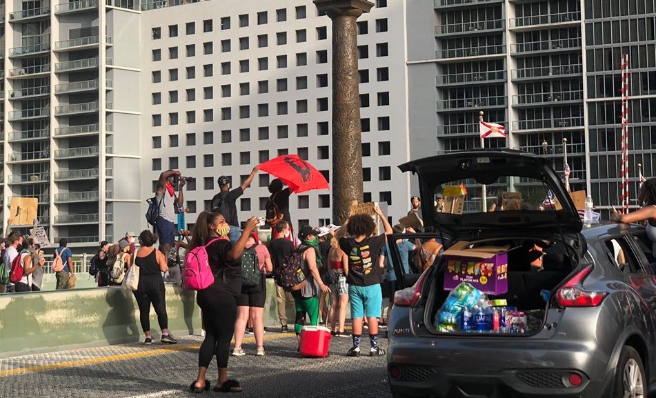 Así fue denunciado en las redes sociales, pues varios manifestantes aparecieron con estas banderas nuevamente el pasado sábado en uno de los puentes que conecta el downtown con el corazón financiero de la ciudad, Brickell, durante una jornada de protestas que comenzó de forma pacífica y culminó con gases lacrimógenos lanzados por la Policía para dispersar a los manifestantes, informó el Miami Herald.