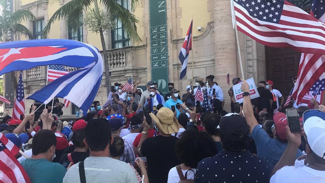 La convocatoria fue realizada por grupos de exiliados cubanos el pasado 15 de junio, invitando a todos los inmigrantes residentes en el condado de Miami-Dade a que acudieran para «agradecer a los Estados Unidos por haberlos acogido».