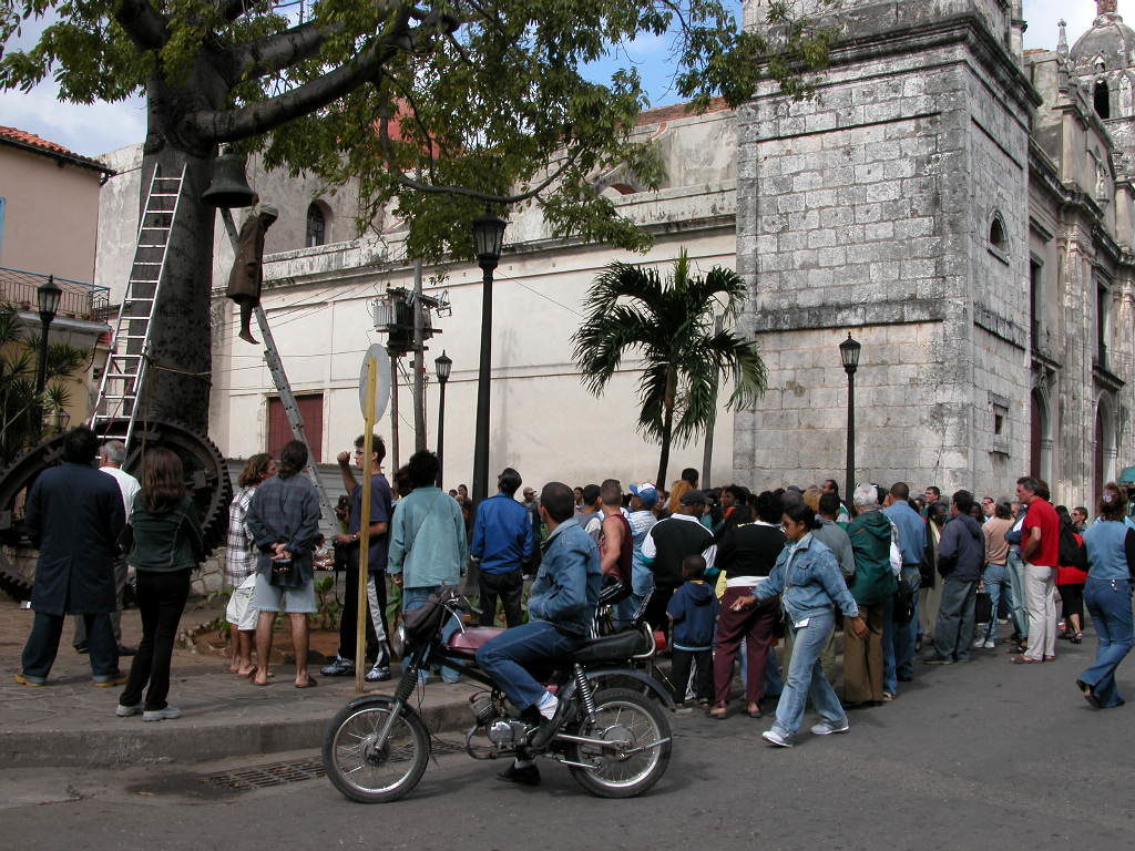 Como cada mañana en la ciudad de Matanzas, el sol salió ese día y fue iluminando cada punto del Parque de la Rueda. Poco a poco, sus rayos fueron bañando la enorme ceiba; primero las piedras en círculo, parecido al brocal de un pozo, que resguarda sus raíces, luego el hierro de la rueda dentada que se apoya en su tronco y luego a un hombre que colgaba a cinco metros del suelo.