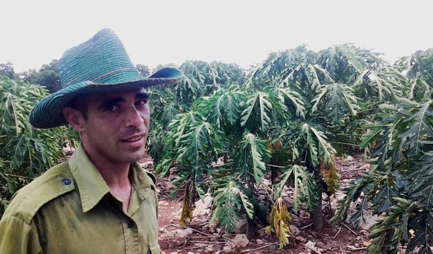 Cuando los visitantes ven los frutales de Yoandi crecer entre las rocas le dicen que es un loco, que no vale la pena tanto esfuerzo; pero él se ha acostumbrado ya. Su mujer y sus dos niños viven en Jagüey a 32 kilómetros de la finca que lleva 16 años trabajando. Ellos comen y tienen resueltas sus necesidades gracias a que él no le tiene miedo a fajarse con las piedras… así que es un hombre feliz.