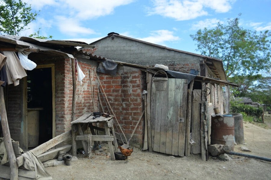 Una de las pocas “casas de lujo” de Guayacán es la de los hermanos Ciro e Idelsa. Es una vivienda mínima, con una minúscula sala, un comedor, cocina, tras habitaciones y un área que parece un baño. Los límites entre las piezas son los escasos muebles de la familia y algunas cortinas. Pero, al menos, no tiene piso de tierra como casi todas las del pueblo y sus paredes son de ladrillos.