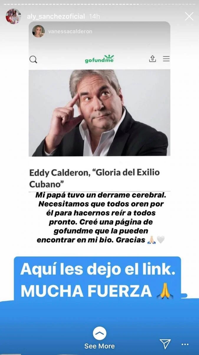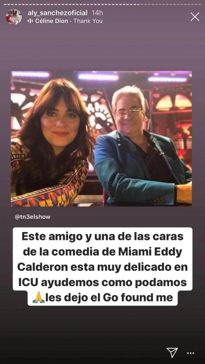 «Este amigo y una de las caras de la comedia de Miami está muy delicado en UCI. Ayudemos como podamos», escribió en una de sus historias de Instagram, pidiendo apoyo para la campaña de GoFundMe.