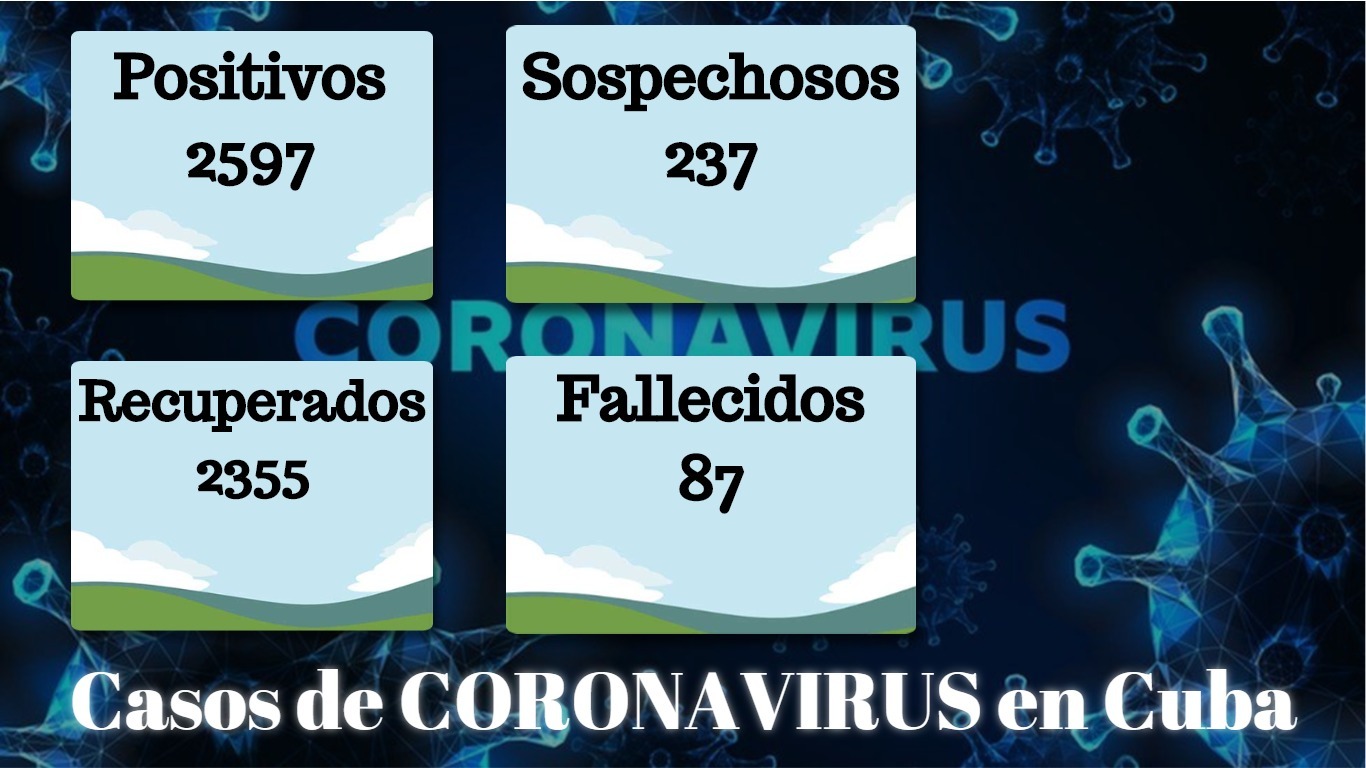 De los 2 mil 597 pacientes diagnosticados con la enfermedad, se mantienen ingresados confirmados 153 (5,9%), 152 el 99,3% presentan evolución clínica estable. Se reportan 87 fallecidos (ninguno del día), dos evacuados y 2 mil 355 pacientes recuperados (91%) (dos altas del día). Se reporta un paciente en estado crítico.