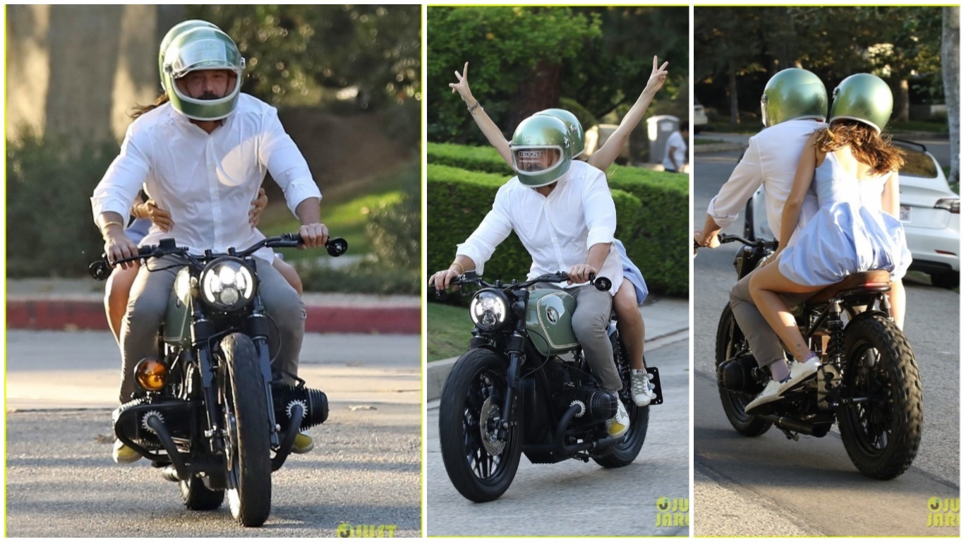 Las ultimas imágenes tomadas por los paparazzi los muestran a bordo del automóvil de color verde oliva y cascos similares. Para la ocasión Ben Affleck optó por pantalones grises y camisa blanca, mientras que Ana de Armas lucía un vestido azul y zapatillas blancas de paseo ideales para subirse en la motocicleta nueva y probarla en Pacific Palisades, California. Ella no pudo evitar la emoción y se veía con un gesto de felicidad y las manos arriba.