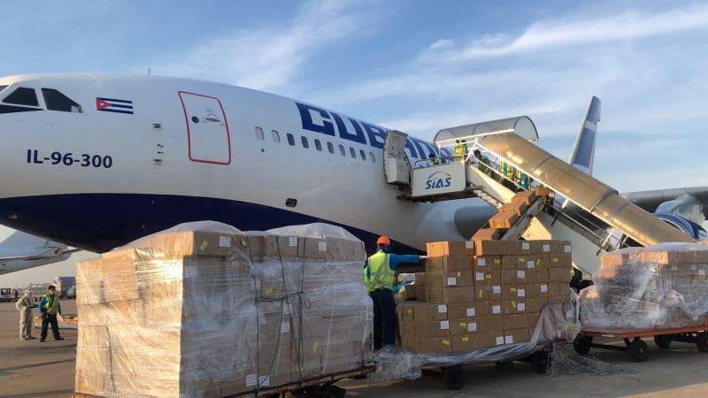 La carga se transportó en un IL96-300 de Cubana de Aviación, que por primera vez se utilizó para transportar mercancías.