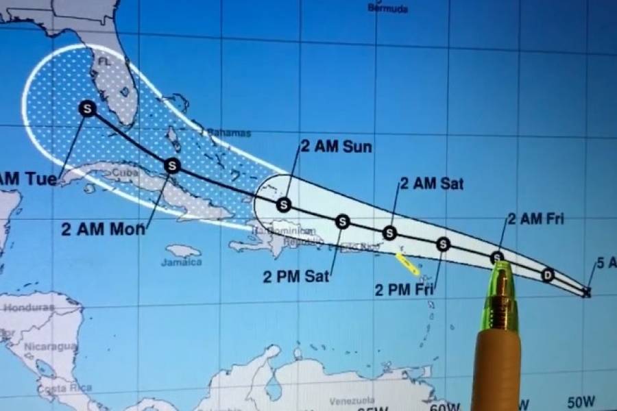 La depresión tropical se encontraba a 830 millas al este sureste de la zona norte de las Antillas menores y se ha emitido una vigilancia de tormenta tropical para St. Maarten, Antigua, Barbuda, St. Kitts, Nevis, Anguilla, Saba y St. Eustatius.