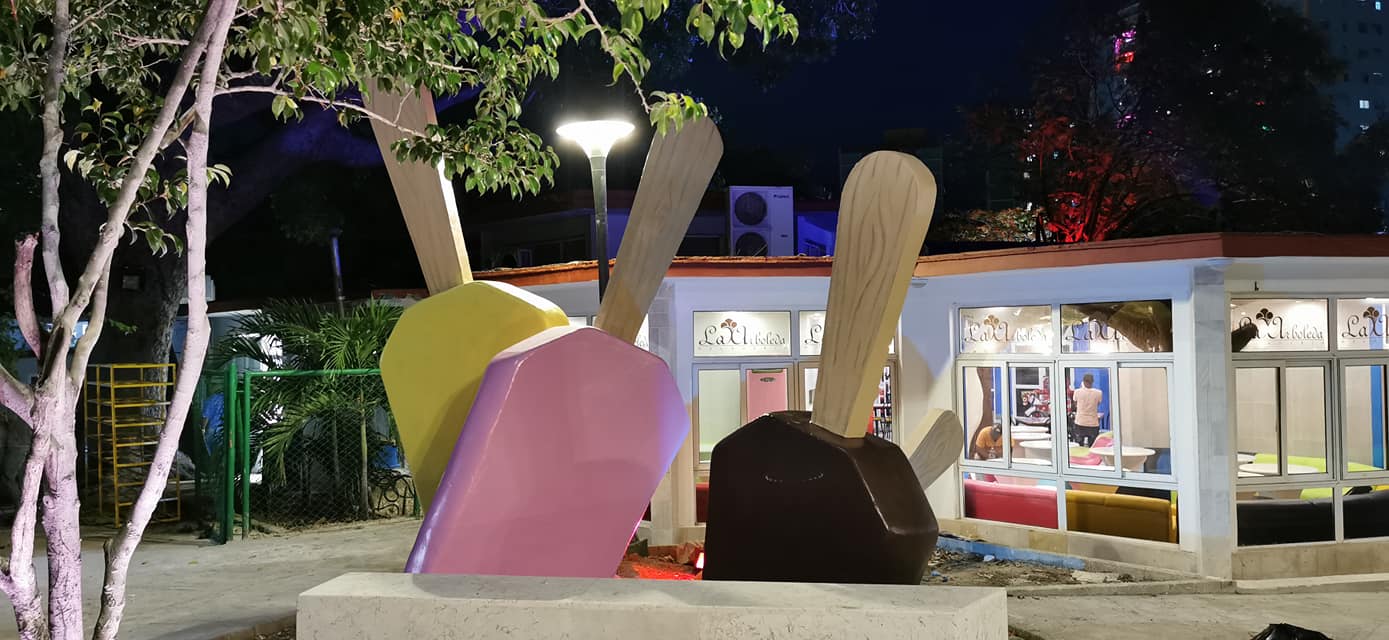 Durante las labores de remodelación se reestructuraron todos los jardines, se climatizó el salón central y se amplió la terraza, esta ultima donde ahora se exhiben en sus áreas verdes una gigantescas esculturas que simulan bolas de helados, paleticas y barquillos.
