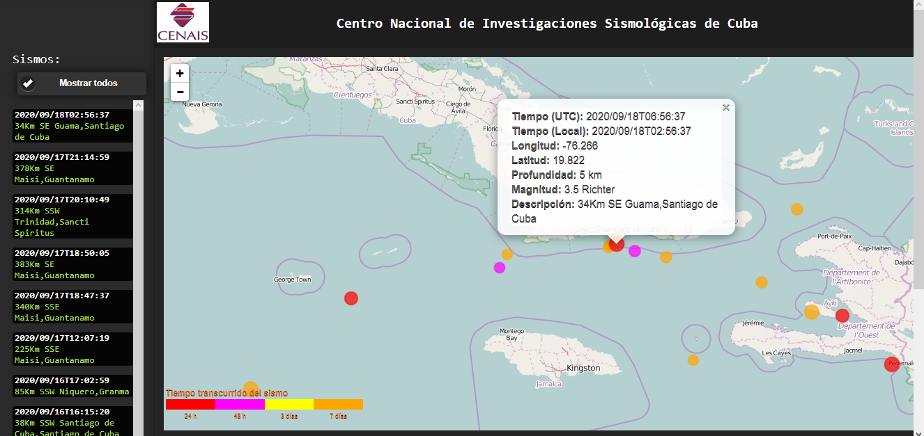 Hasta el momento, nuestra redacción ha recibido reportes de perceptibilidad en los municipios de Santiago de Cuba y Guama, en la provincia de Santiago de Cuba, y en los municipios de Bartolomé Masó, Jiguaní y Bayamo, en la vecina provincia de Granma.