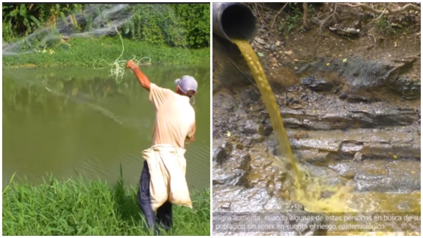 “Cuando el agua está clara usamos unas mallas para sacarlos (a los peces). No obstante, los días en que está más sucia, no queda de otra que pescarlos a mano”, cuenta uno de los hombres que realiza esta práctica.