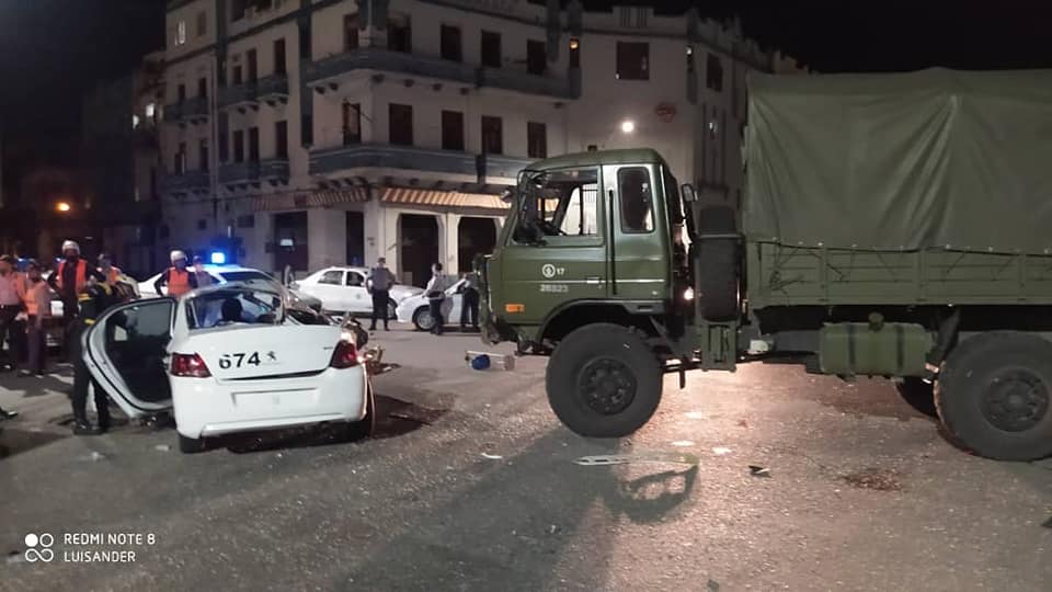 Un violento choque ocurrido hace unas horas en la céntrica avenida de Carlos III, en La Habana, en pleno toque de queda, entre una patrulla de la Policía Nacional Revolucionaria (PNR) y un camión de las Fuerzas Armadas Revolucionarias (FAR) dejó a los dos oficiales que iban a bordo del patrullero en estado grave y con peligro para sus vidas.
