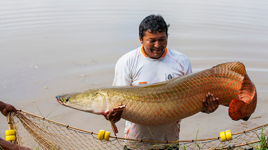 Incluso, el paiche, como la claria, puede aguantar hasta 40 minutos fuera del agua si se encuentra en peligro o está en plena persecución. Su dieta consiste en otros peces y hasta de pequeños animales terrestres, incluyendo aves, que captura cuando caen al agua, o incluso dando saltos fuera de la misma.