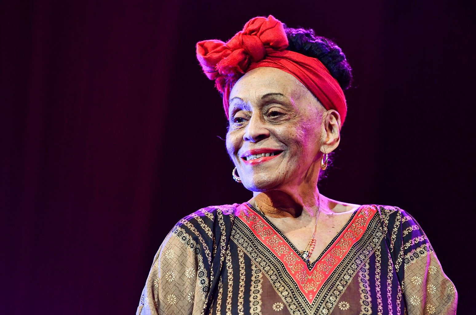 Frente a su público esta nonagenaria cantante borra los caprichos del paso del tiempo que, en ocasiones, se le posan e insiste que la acompañen en los temas que ue viven con su voz.