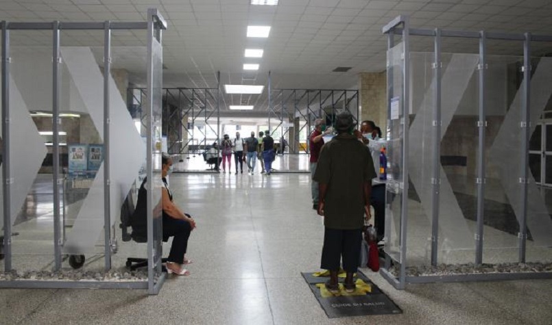 Entre las novedades surgidas por la propia pandemia se encuentra una sala de aislamiento dentro de la propia terminal, donde poder mantener a cualquier pasajero que presente síntomas de infección u otros problemas, con todas las condiciones requeridas, hasta tanto llegue el SIUM para su traslado.