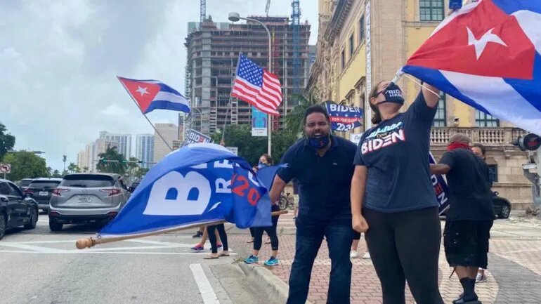 Cientos de cubanos se congregaron este sábado en Miami para festejar a ritmo de salsa el triunfo del candidato demócrata Joe Biden, quien tras varios días de espera se proclamó hace solo unas horas como el presidente número 46 de los Estados Unidos, tras sumar los valiosos votos electorales que le faltaban para alcanzar el limbo de los 270 requeridos.