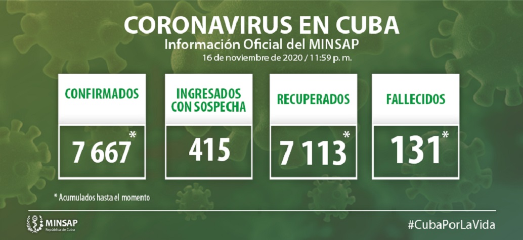 - Ciudadano cubano de 10 meses de edad. Reside en el municipio Consolación del Sur, provincia Pinar del Río. Contacto de caso confirmado. Se mantienen en vigilancia: 11 contactos.