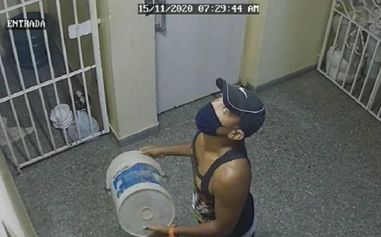 Este ladrón cubano nunca llegó a imaginar que quedaría captado en cámara mientras cometía una de sus fechorías en el Vedado capitalino, donde se robó de la escalera de un edificio un bombillo o un tubo de luz fría.