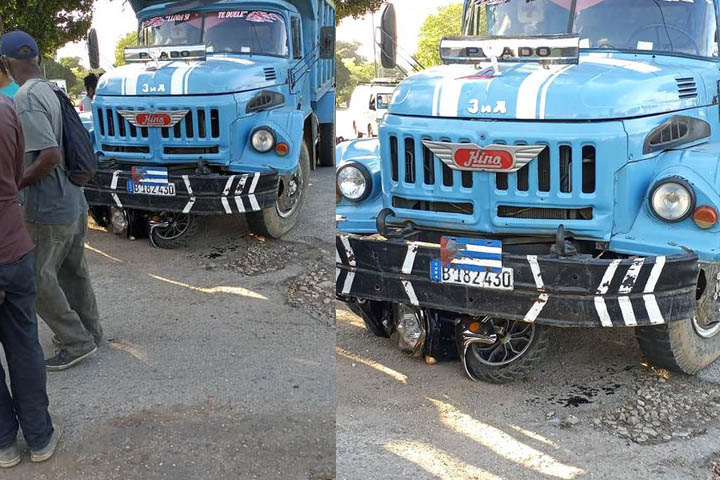 El conductor de una motorina en La Habana pudo salvar su vida en cuestión de segundo al conseguir tirarse a tiempo del vehículo antes que un camión Hino terminara aplastándola por completo.