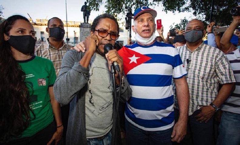 El presidente cubano Miguel Díaz-Canel violó las medidas higiénico-sanitarias establecidas en Cuba contra el coronavirus Covid-19 durante su asistencia al Parque de Trillo a un acto contra el plantón ante la manifestación pacífica en las afueras del Ministerio de Cultura en La Habana.