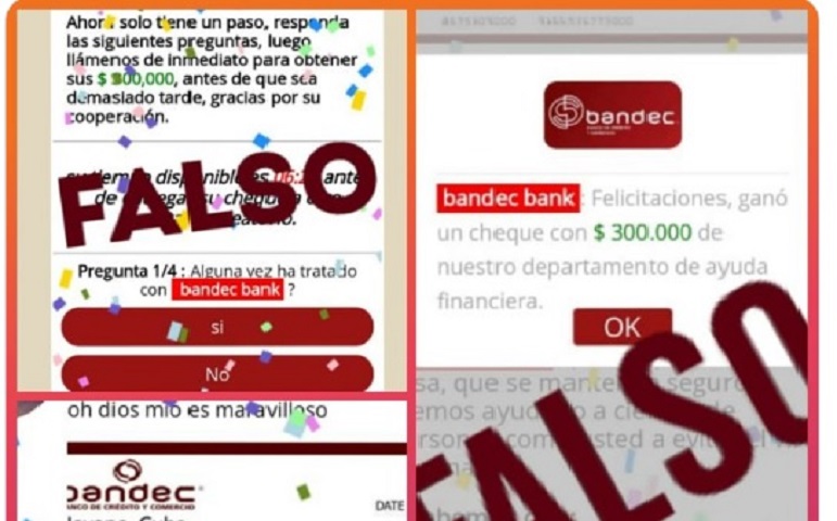 ?️ BANDEC informa sobre falsa divulgación en nombre de nuestra institución con el fin de hacer creer a clientes el beneficio del otorgamiento de cheque, como premio.